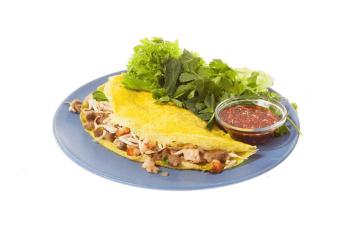 Banh xeo, Vietnamese coconut pancakes with spicy filling. In this case - with pork and shrimp.