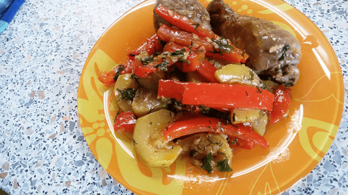 Warm salad of zucchini and pepper