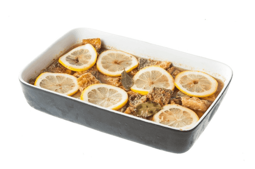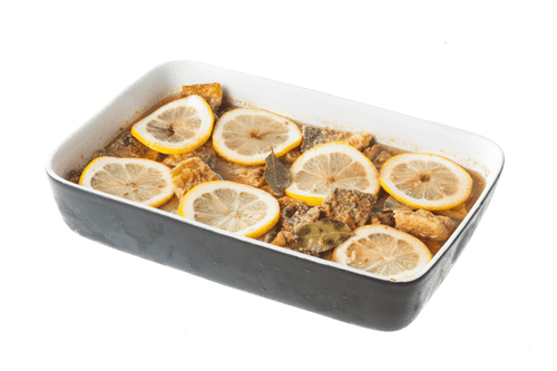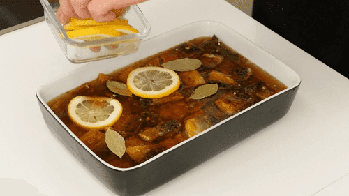 Place all the fish in a ceramic dish skin side up, and pour the marinade over it. If the marinade does not fully cover the fish, mix water with vinegar in a 3:1 ratio and add it.