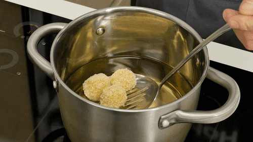 Fry the croquettes for 2 minutes until golden brown.