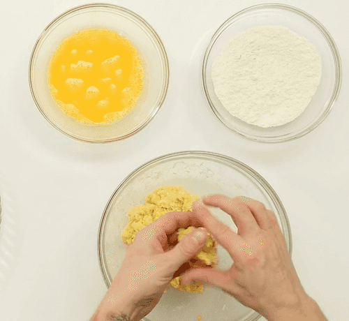 Form 20 balls from the cheese mass. Roll each in flour.