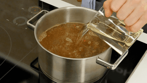 Boil water, add salt, pepper, sugar, coriander, vinegar, and oil. Stir until the sugar dissolves.