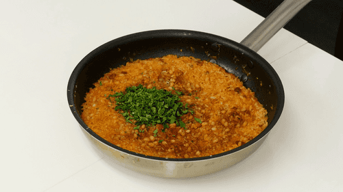 Heat oil in a saucepan and sauté chopped onion over medium heat for 5 minutes, then add pine nuts and sauté for another 3 minutes, stirring constantly.