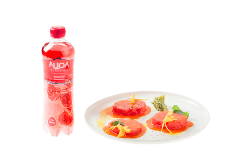 Carrot and watermelon is a refined and refreshing dessert that combines an unexpected blend of flavors and textures. Its history is not tied to traditional cuisine but rather represents a modern culinary experiment. The base of the dish is juicy watermelon flesh soaked in a rich carrot-raspberry sauce with a hint of lemon's acidity. Creamy guacamole adds velvetiness while spicy chili pepper gives a zesty touch. Ponzu vinegar and olive oil highlight the freshness and depth of flavors, making each bite a true gastronomic experience. This dessert is perfect for summer evenings when one craves something unusual and light. Garnished with sorrel, it not only pleases the eye but also offers harmony of vibrant flavors by uniting sweetness, acidity, and mild spiciness in a single ensemble.