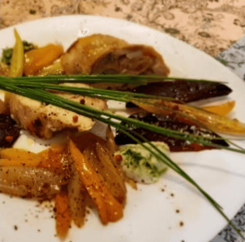 Chicken roll with roasted beet slices is a refined dish of European cuisine that combines the juiciness of chicken meat, the sweet taste of roasted beets, and the rich aromas of spicy sauces. This dish may draw inspiration from traditional French or Italian meat roll recipes but gains uniqueness through the combination of fresh herbs and a nutty accent. Roasted beets give it a special texture and sweetness, beautifully contrasting with the tender marinated chicken roll. Enhanced with white and green sauces, these ingredients create a layered flavor with a hint of lemon's acidity, the sharpness of feta cheese, and the spiciness of garlic. Such a dish is perfect for a festive dinner or cozy family gathering, delighting guests with its sophistication and harmony of flavors.