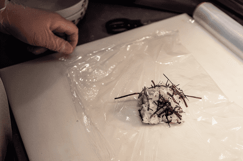 Place 80 grams of the mixture on a film and shape it into a ball. The ball can be sprinkled with paprika or cayenne pepper on top. Eat by dipping in soy sauce.