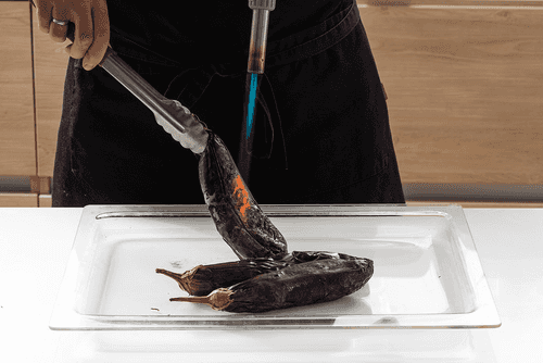 Roast the prepared eggplants over an open flame to achieve a smoky flavor.