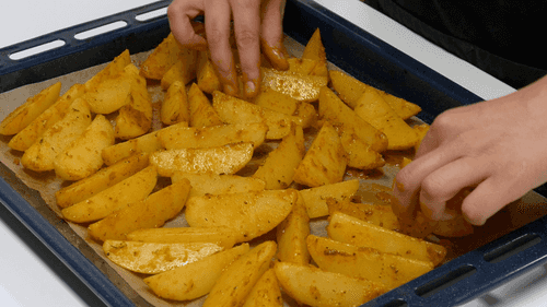 Here's a tip on how to get a crispy crust and tender center from potatoes in the oven. You need to cook them in two stages: first boil them on the stove, and only then bake them on a baking sheet. There's another trick in this recipe: before baking, we generously coat the potatoes with oil and spices, which makes the crispy wedges not only crispy, but also fragrant.