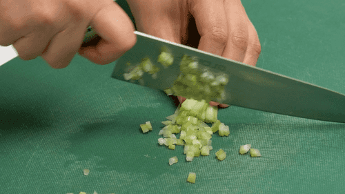 Chop the onion and celery into small cubes, and mince the parsley.