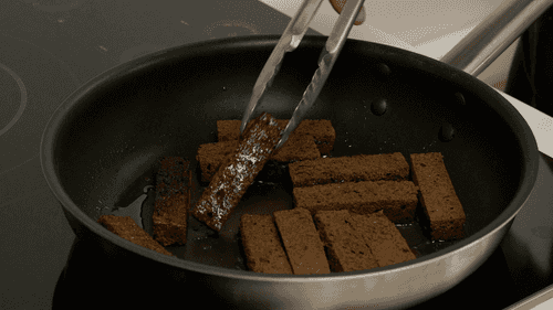 Heat vegetable oil in a pan and fry the toast on all sides until golden brown. Transfer the finished toast to a paper towel to remove excess oil.
