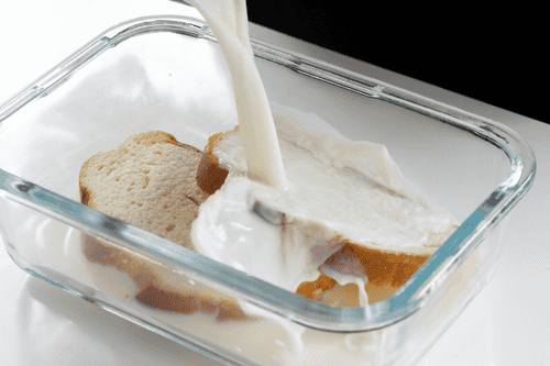 Half an hour before starting to fill the pancakes, soak the bread in milk as well.