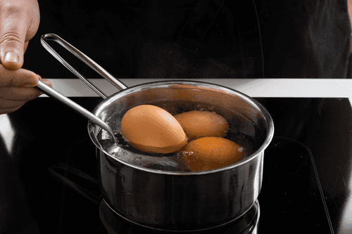 Boil the remaining eggs hard and cool them.