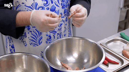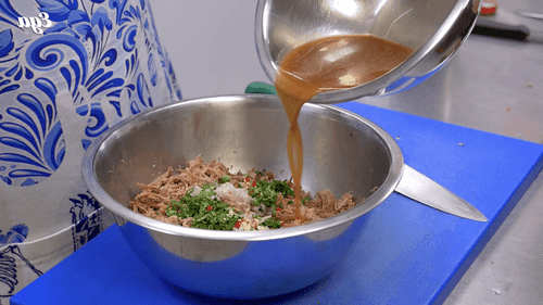 Remove the spatula from the vacuum bag, preserving the juice. Tear the meat into fibers.