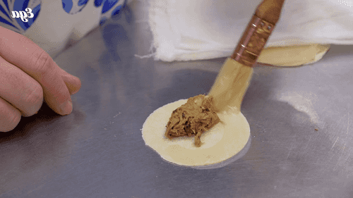 Wrap the filling in the dough, brushing the edges with egg. Freeze the chebureks.