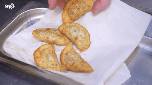 Fry the chebureks in hot oil (180–190 degrees). Place on paper to absorb excess oil.