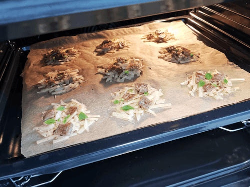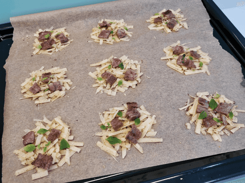 Send the baking tray to a preheated oven at 180 degrees. Bake for about 10 minutes, checking the browning level.
