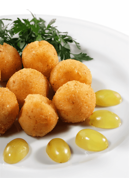 Croquettes are a refined dish of French cuisine dating back to the time of Louis XIV. Originally a way to repurpose leftover meat, they have now become a true delicacy. These crispy golden balls with a delicate shrimp filling enriched with creamy béchamel sauce captivate from the first bite. Their texture is a fine balance between airiness and richness, while the flavor is an exquisite blend of seafood, butter, and a light creamy note. Croquettes are perfect as an appetizer with white wine or as an aperitif before the main course. They can be served with spicy sauces or fresh salads, making them a versatile treat for any occasion.