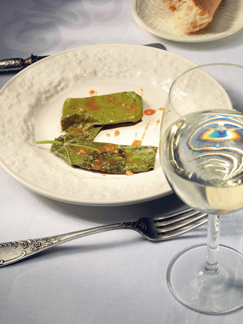Sulguni in grape leaves is a true gastronomic poem embodying the traditions of Georgian cuisine. The tender salty cheese wrapped in aromatic grape leaves gains a soft spiciness from frying in a blend of oils. The honey-garlic sauce adds a light sweetness to the flavor, highlighting the complex balance of salty, creamy, spicy, and hot. This dish is not just a treat but a celebration of taste sensations that transports you to the sunny vineyards of Georgia. It is served as an appetizer or as an accompaniment to meat and wine meals, creating harmony of taste and aroma. Each piece of sulguni wrapped in the warmth of grape leaves offers an unforgettable moment of gastronomic delight.