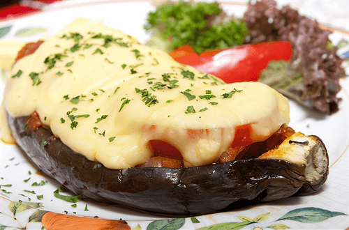 Baked eggplants with tomatoes and cheese