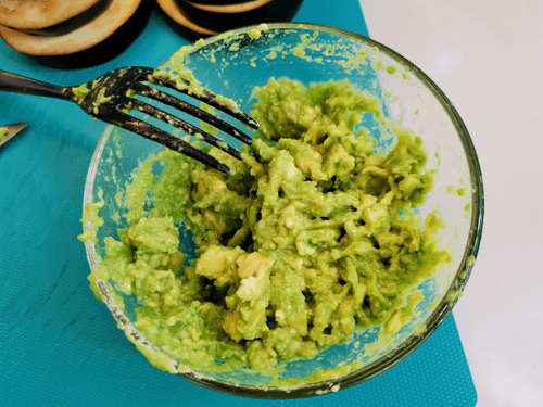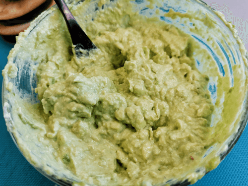 Place the avocado flesh in a deep bowl and mash it with a fork.