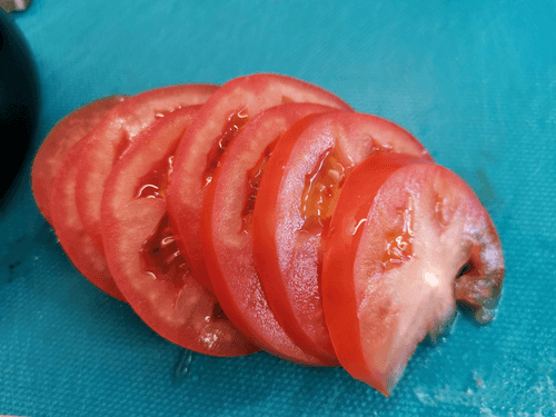 Slice the tomato into rounds 6–8 mm thick.