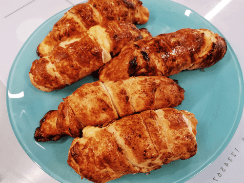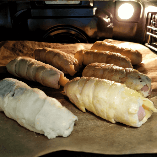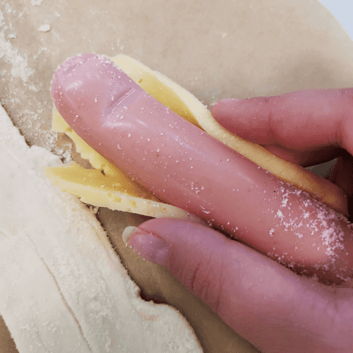 Sausages with cheese in puff pastry