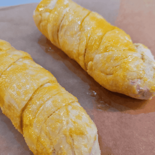 Sausages with cheese in puff pastry are a simple yet incredibly appetizing dish from Russian cuisine. Its roots lie in baking traditions where the dough envelops a juicy filling, creating a crispy crust and tender core. In this version, classic sausages are paired with cream cheese that melts during baking, adding softness and richness to the flavor. The aromatic layer of dough covered with a golden crust after baking makes each serving incredibly appealing. Perfect for a quick snack or light treat at a party. Serving them hot allows you to enjoy how the melted cheese gently complements the meatiness of the sausage, creating a harmonious flavor duet. This dish is easy to prepare but delights with its texture and taste, reminiscent of the coziness of home cooking.