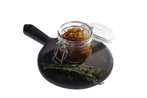 Onion confit with white onions is an elegant creation of French cuisine that transforms simple ingredients into a refined garnish or accompaniment to dishes. White onions are slowly caramelized, acquiring a deep, sweet-spicy flavor with hints of honey and wine vinegar. Thyme and cinnamon add a subtle aroma, making it a sophisticated accent for cheese plates, meat delicacies, and even simple bread. This confit is a classic of gastronomy born from the tradition of slow cooking inherent in French recipes. It can be stored for up to a month in the refrigerator, allowing you to enjoy its rich flavor at leisure. The perfect combination of sweetness, acidity, and spices makes it versatile and indispensable for gourmets.