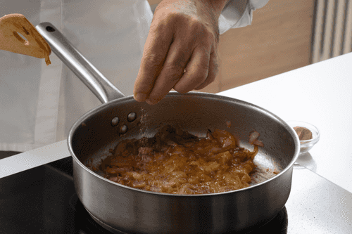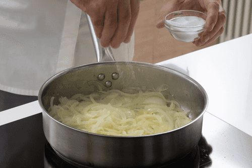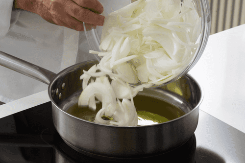 Place the onion in a saucepan and sauté over high heat for about 10 minutes.