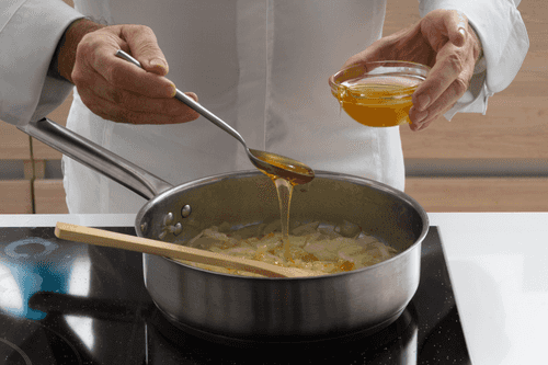 Add honey, increase the heat, and fry while stirring for another 2 minutes.