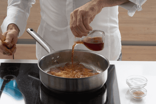 Add vinegar and evaporate over low heat.