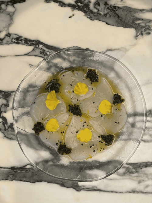 Scallop crudo with black caviar