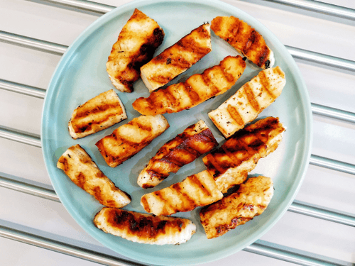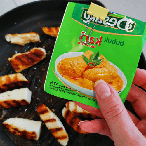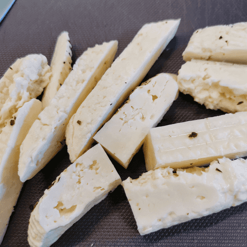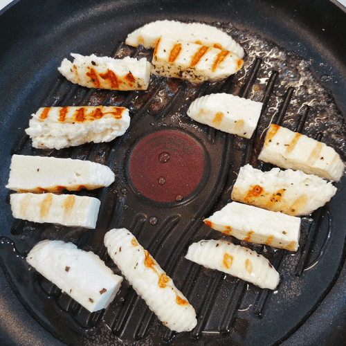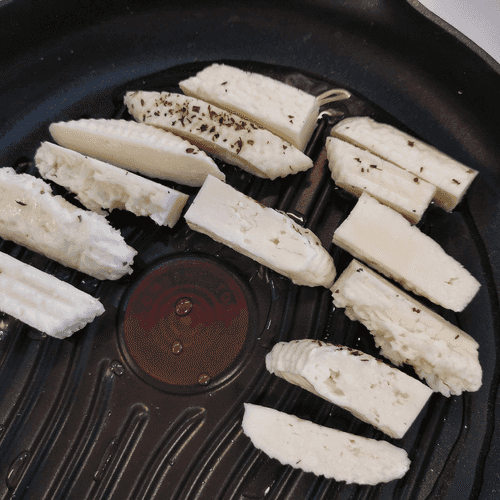 Fried halloumi cheese made from goat's milk with curry is a harmony of textures and aromas. Halloumi, known for its dense structure and ability to hold shape when fried, develops a delicious golden crust while becoming soft inside. The addition of curry brings exotic Eastern notes, creating a spicy and rich flavor complemented by Italian herbs. This recipe embodies the art of simple yet elegant European cuisine. The dish can be served as an appetizer or alongside a fresh salad and pairs wonderfully with honey or yogurt-based sauces. The taste of halloumi with subtle spice nuances makes it a versatile ingredient for gourmets who appreciate the balance of salty, spicy, and creamy.