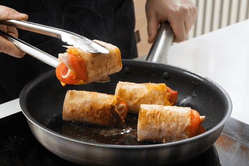 Heat some vegetable and butter in a pan and fry the roses on all sides until lightly crispy.