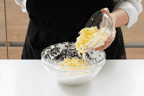 Grate the cheese and add it to the beaten egg whites.