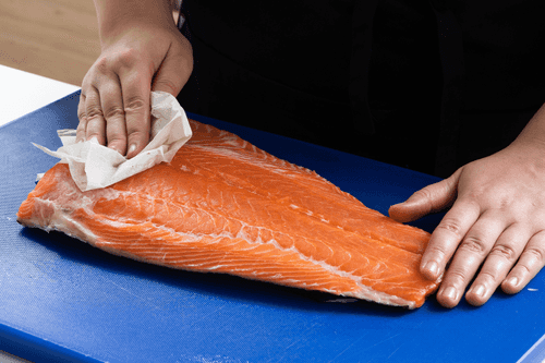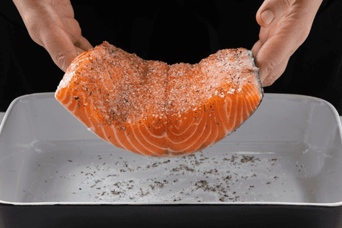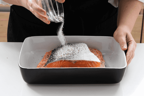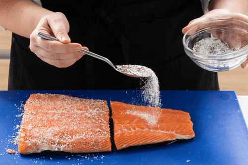 Sprinkle each fillet with 1 tablespoon of dry mixture. Gently rub salt and sugar into the fish with your hands.