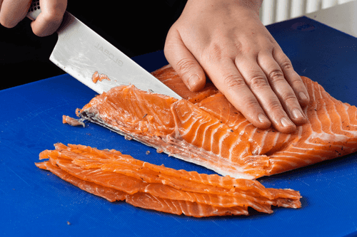 Then rinse the remaining salt and sugar off the fish, slice it thinly, and serve.