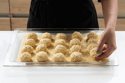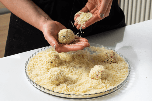Mix the remaining cheese, sesame seeds, and breadcrumbs in a shallow bowl.