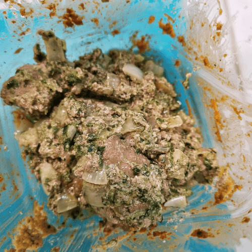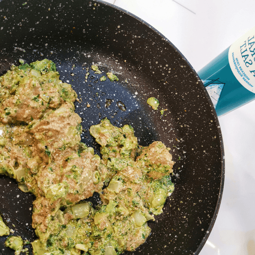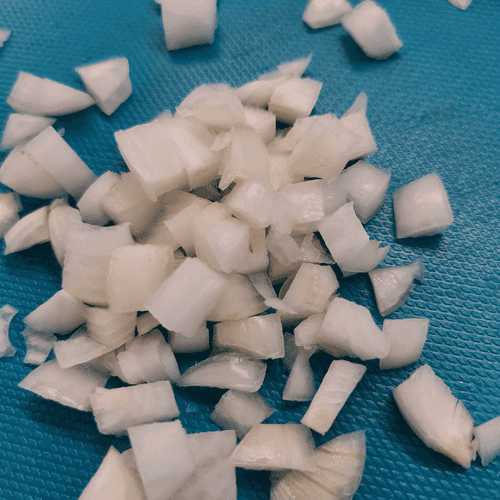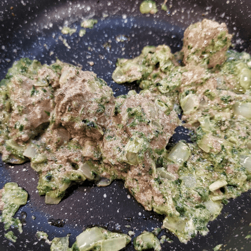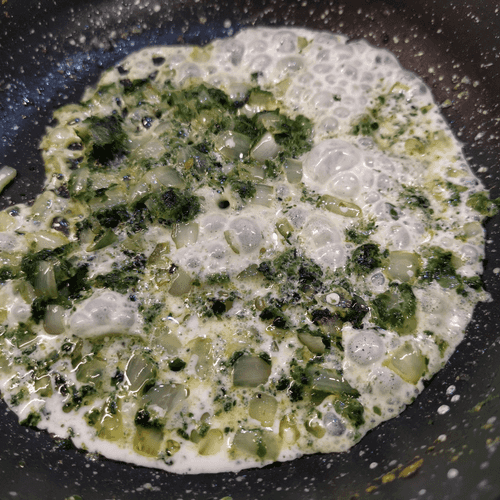 Melt butter in a pan, pour in cream, add onion and a cube of finely chopped spinach.
