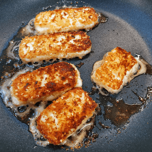 Feta cheese fried in cheese and almond breading