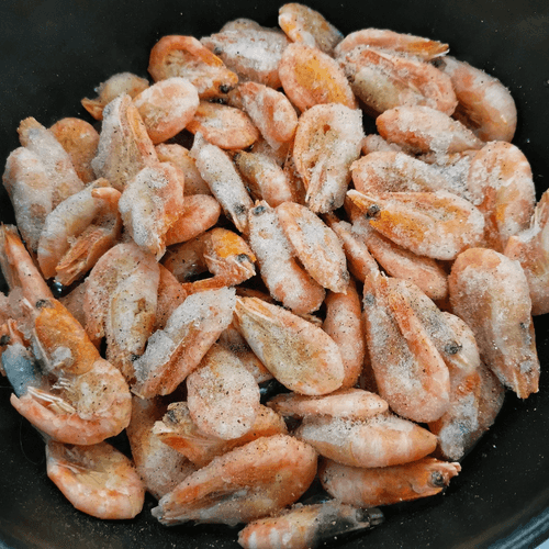 Add shrimp to boiling oil. Stir after 2 minutes.