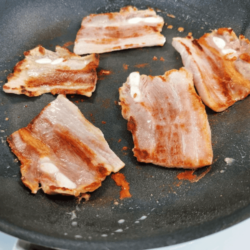 Place the bacon on a dry hot skillet.
