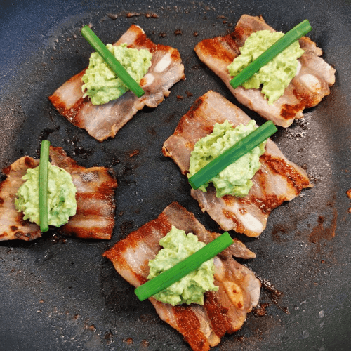 The lard appetizer with avocado sauce is a harmonious blend of the rich flavor of bacon and the delicate creamy sauce. This recipe combines the traditions of fatty meat snacks with a modern approach to lightness in taste thanks to fresh avocado, lemon juice, and parmesan. Bacon, crisped to a crunchy texture, pairs perfectly with the tenderness of cream cheese and the spiciness of green onions. This recipe is especially suitable for serving at festive tables or as an original treat for guests. The ease of preparation and combination of vibrant flavors make this dish versatile: it will adorn both a formal dinner and a cozy family evening. The appetizer is served hot, allowing all its aromatic nuances to unfold.
