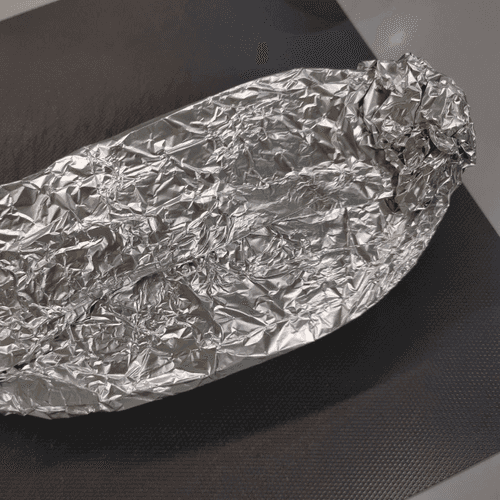 Wrap the eggplant in foil and place it in a preheated oven at 170 degrees for 20 minutes.