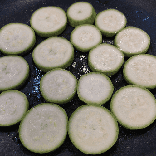 Slice the zucchini into circles about 7 mm thick. Add salt.