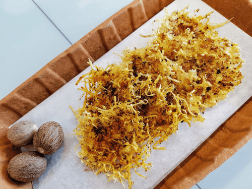 Eastern-style cheese chips are a culinary creation that combines the aromas of Eastern cuisine. Crispy, thin slices of baked hard cheese infused with the warmth of saffron, a light tang from sumac, and the delicate spice of nutmeg create a unique flavor bouquet. This recipe is inspired by ancient Eastern traditions where spices played a key role in culinary art. They are perfect as a refined addition to an aperitif or as a snack with hot tea. They can be used as a garnish for meat or vegetable dishes and served with sauces for a richer taste. The simplicity of preparation makes this recipe an excellent choice for those who want to quickly enjoy the exquisite flavors of Eastern cuisine.