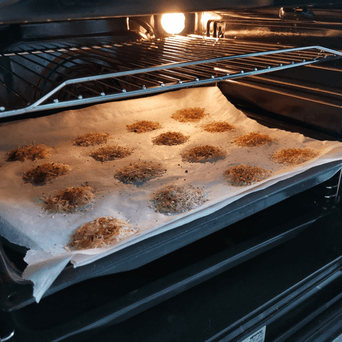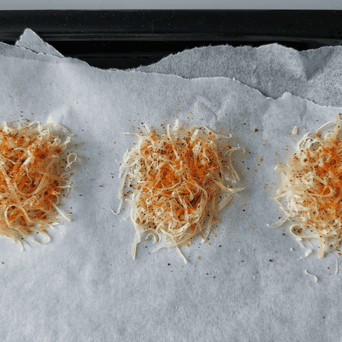 Make piles of cheese. About 1 tablespoon for each.