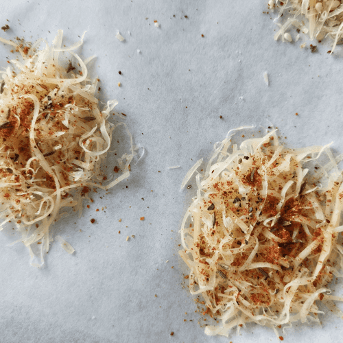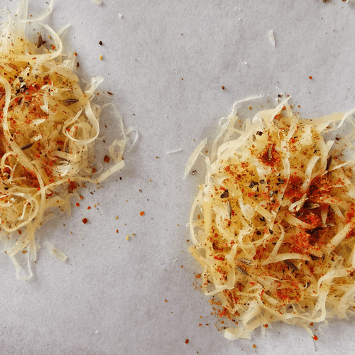 Сырные чипсы по-кавказски — это сочетание простоты и богатства вкуса. Основанный на традициях Кавказа, этот рецепт воплощает любовь к сыру, специям и теплу домашней кухни. Твердый сыр при запекании превращается в хрустящие, румяные лепестки, наполненные пикантными нотами аджики, черного перца и жгучего чили. Добавление кумина придаёт им тонкий восточный аромат. Эти чипсы идеально сочетаются с соусами на основе йогурта или свежими овощами, превращая их в отличную закуску к вину или пикантное дополнение к мясным блюдам. Простота приготовления и насыщенность вкуса делают этот рецепт незаменимым для любителей ярких гастрономических впечатлений. Наслаждайтесь этим кавказским шедевром, пробуя его с разными специями и соусами!