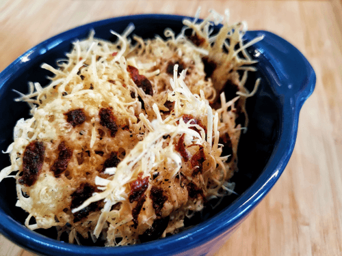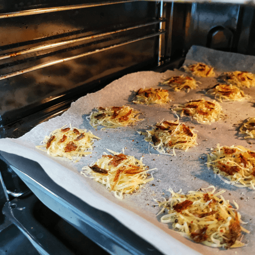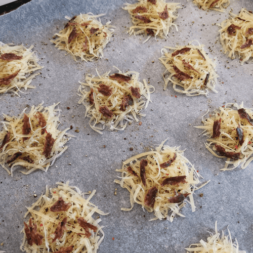 Cheese chips with shuzhuk are a refined combination of crispy parmesan and spicy meat delicacy. This dish is inspired by the traditional cuisine of Central Asia, where shuzhuk—a spicy beef sausage—is valued for its rich flavor. Baked to a golden crust, the cheese forms the perfect crispy base, while pieces of shuzhuk add depth of flavor complemented by an aromatic blend of peppers. These chips are prepared in just a few minutes, and their crunchy texture makes them an ideal snack for buffets, friendly gatherings, or cozy evenings. They pair wonderfully with sauces and fresh vegetables, offering a unique alternative to conventional snacks. This dish not only delights the taste buds but also surprises with its simplicity and elegance.