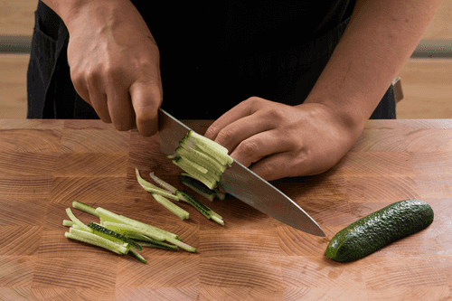 Cut the cucumber into the same strips.